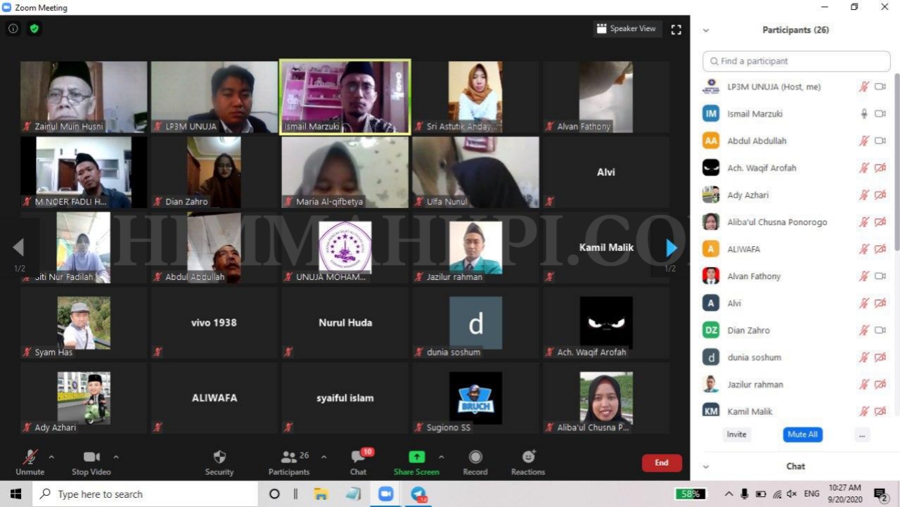 Probolinggo, himmahkpi.com. Langkah meningkatkan tri dharma perguruan tinggi, Lembaga Penerbitan, penelitian dan Pengabdian kepada Masyarakat (LP3M) Universitas Nurul Jadid (UNUJA) Paiton menyelenggarakan kegiatan Reserach Webinar Series perdana. Minggu, (20/09/20).